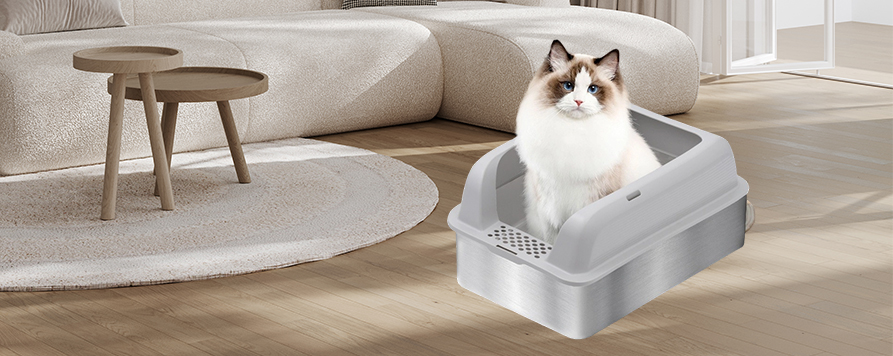 Pinagsasama ng Stainless Steel Splash-Proof Cat Litter Box ang modernong disenyo sa mga high-tech na materyales, na nagbibigay ng mas malinis at maginhawang karanasan ng user. Nagbibigay-daan ito sa mga may-ari ng alagang hayop na masiyahan sa mas madaling proseso ng paglilinis habang tinitiyak ang komportable at ligtas na kapaligiran para sa kanilang mga pusa. Gawa sa mataas na kalidad na hindi kinakalawang na asero, ang litter box na ito ay madaling linisin, matibay, at matibay. Pinipigilan ng electrolytically treated surface nito ang dumi at basura, na ginagawang mas madali ang paglilinis.